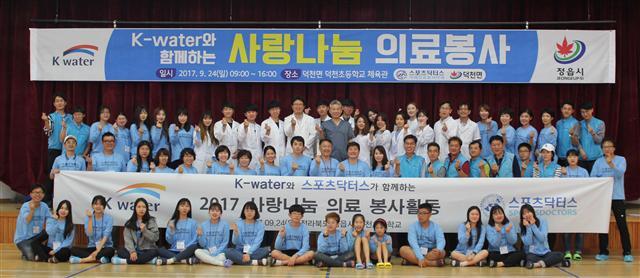 정읍시 덕천면 주민들의 건강증진을 위해 마련된 금번 의료봉사활동에는 K-water 직원, 스포츠닥터스 전문의료진 및 자원봉사자, 정읍시공무원 등 70여명이 참여해 어르신, 장애우 등 150여명의 지역민에게 의료서비스를 제공하고 장수사진을 촬영해주었다.