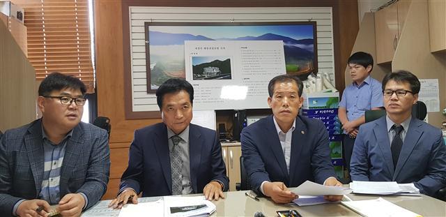▲ (주)내장산해동관광호텔 김찬호 대표는 26일 정읍시청 브리핑실에서 기자회견을 자청해 “해동관광호텔 신축사업을 차질없이 성공시키겠다”고 밝혔다.