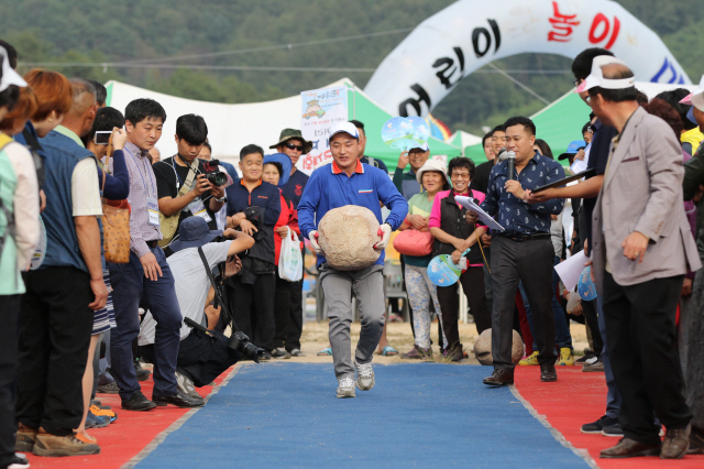 ▲ 옛날 머슴들이 품삯을 정할 때 돌을 들어 힘을 겨루던 것에서 착안한 머슴돌 들기 대회가 올해 축제에서는 더욱 다양하게 진행된다.