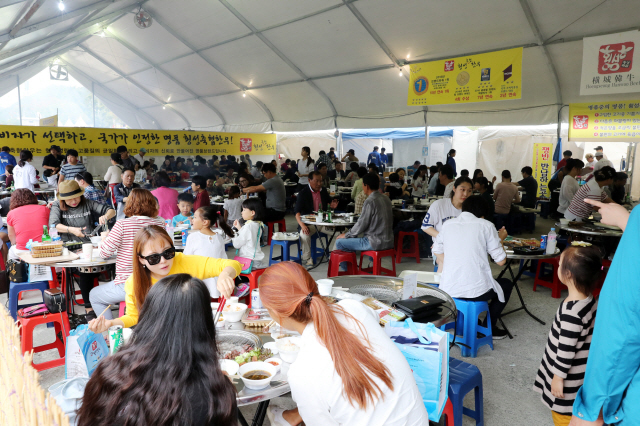 ▲ 횡성한우축제의 백미로 손꼽히는 세계 최대 규모의 한우 셀프식당. 사진제공=횡성군청·강원일보