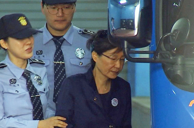 ▲ 구속 만기가 3일 앞으로 다가온 박근혜 전 대통령이 13일 오전 서초구 서울중앙지법에서 열린 속행공판을 마친 뒤 안경을 쓰고 호송차에 오르고 있다. 법원은 이날 증거인멸 등의 우려로 박 전 대통령의 구속을 연장했다. 연합뉴스