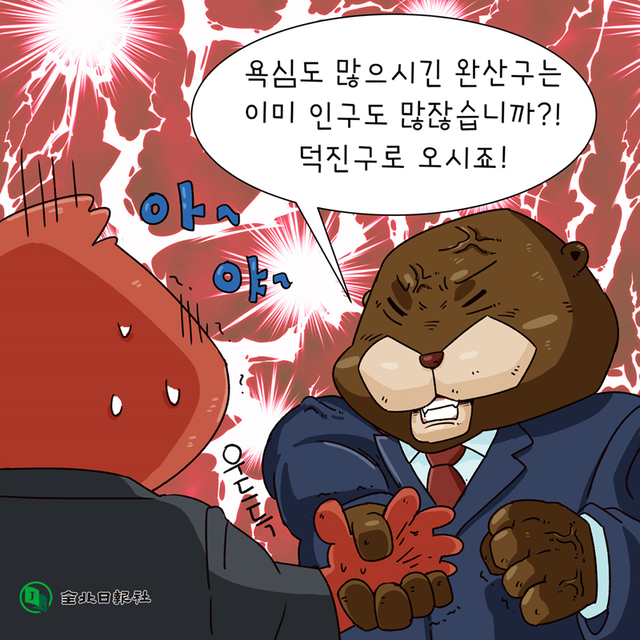 덕진구 수달 “욕심도 많으시긴 완산구는 이미 인구도 많잖습니까?! 덕진구로 오시죠!”