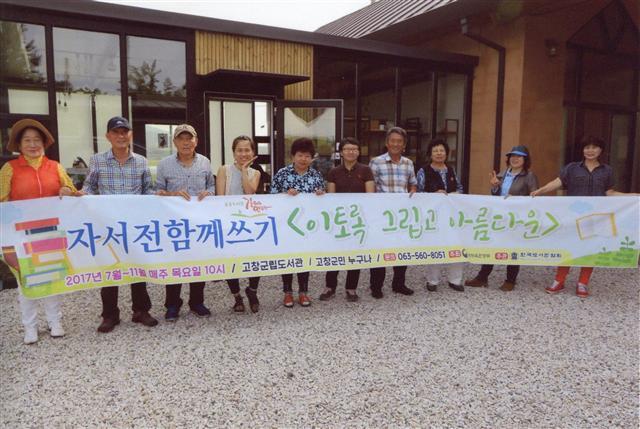 ▲ 고창군립도서관이 진행하는 ‘자서전 쓰기’ 프로그램 참여자들의 단체 사진.