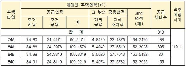 공급일정은 19일 입주자모집공고를 시작으로 25~27일 신청접수, 11월 8일 당첨자 발표, 12월 19~21일 계약체결 예정이며 입주는 2019년 11월 예정이다.