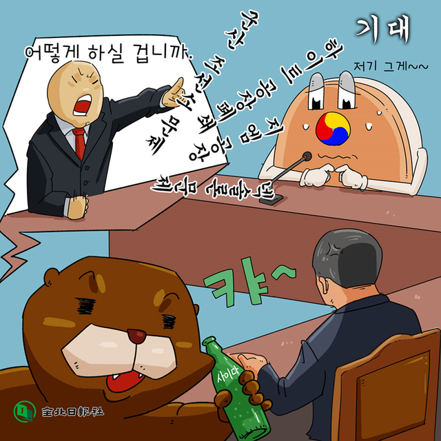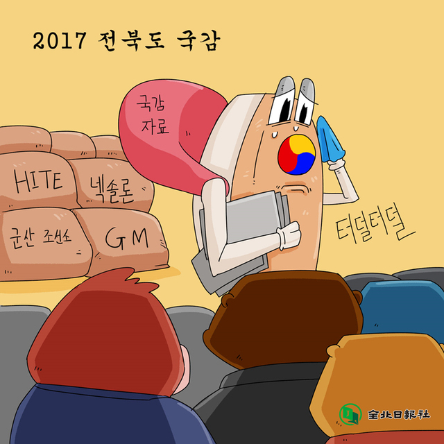 (신명이가 전북도의 산적한 문제를 국감 자료를 들고 터덜터덜 걸어간다. 기대하는 수달들)