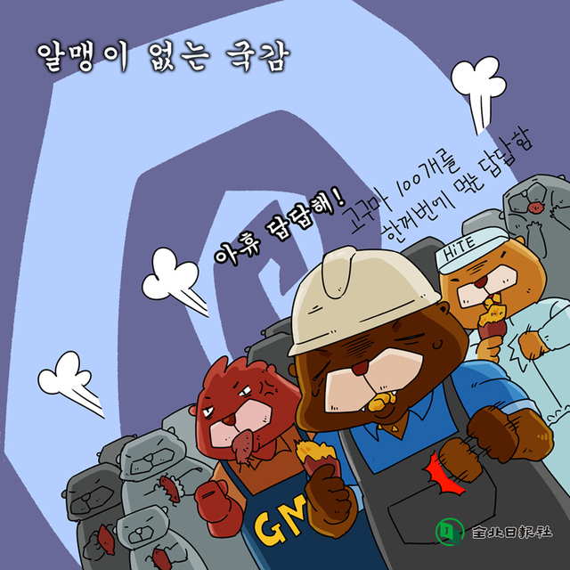 (전북도민 수달들이 고구마를 씹으며 답답해하고 있다.)