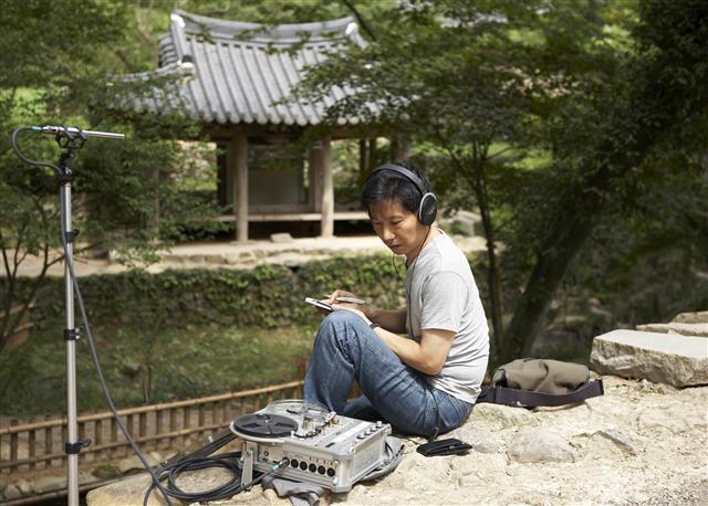▲ 담양 소쇄원에서 녹음중인 악당이반 김영일 대표. 김 대표는 국립민속국악원 예음헌에서 국악 콘서트 다담에 참여한다.