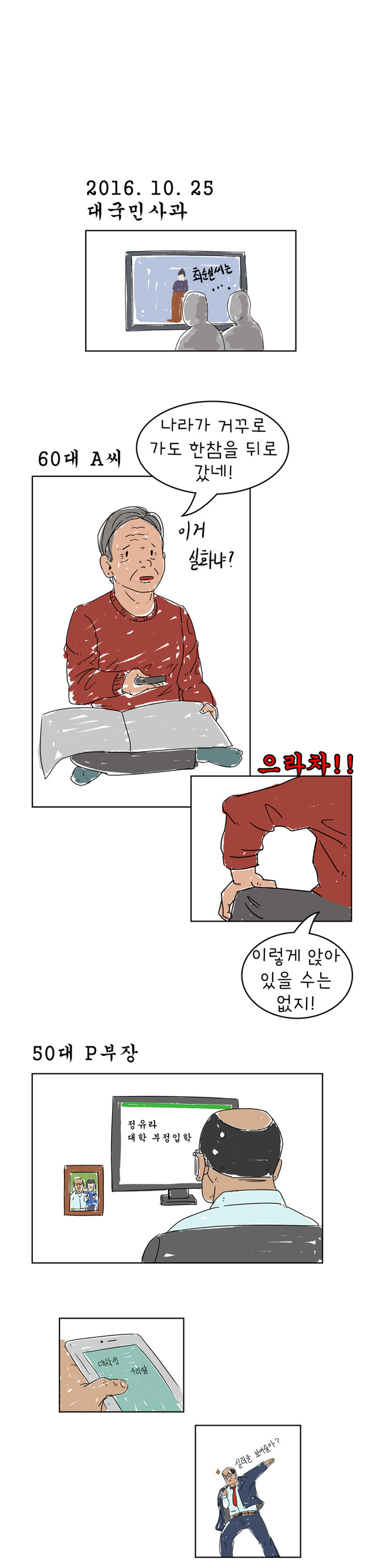 60대 A씨 "나라가 거꾸로 가도 한참을 뒤로 갔네! 이렇게 앉아 있을 수는 없지!"