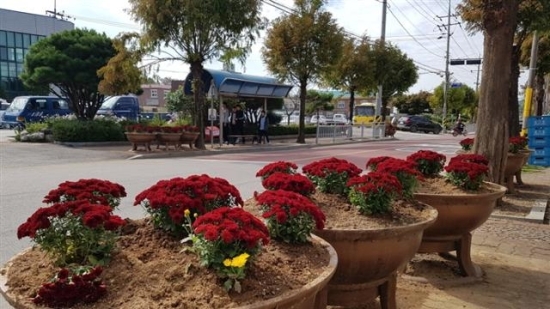 아산면은 운암농원(대표 김범종)에서 기증한 국화(700본)를 대형 화분 100여 개에 식재하여 주요 도로변에 비치하고, 도로변 쓰레기를 수거하는 등 청정하고 아름다운 고창의 가로경관 조성에 적극 나섰다.
