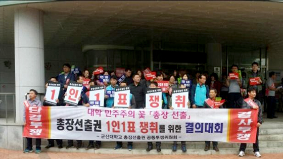 앞서 지난달 25일 군산대는 전체 교수회를 열어 총장임용후보자 추천에 관한 규정 제정안을 통과시켰다.