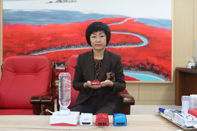 ▲ 현성바이탈 신지윤 대표가 자체 개발한 수소수기를 소개하고 있다.