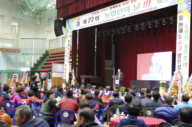 진안에서도 지난 9일 농업인의 날 행사가 열렸다. 1000여명의 농업인, 관내 기관사회단체장이 함께한 가운데 문예체육회관에서 열린 이날 행사에는 이항로 군수, 박명석 군의회의장 및 다수 군의원이 자리를 같이했다.