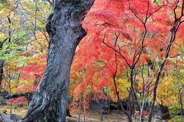 고창군 고수면 은사리 문수사의 애기단풍나무숲(천연기념물 제463호)이 절정으로 물들어 아름다운 풍광을 뽐내고 있다.