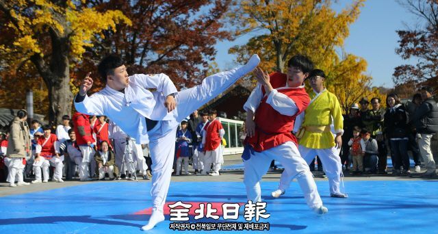 지난 11일 전주 경기전 앞에서 제18회 전주시장배 전국택견대회가 열려 한옥마을을 찾은 관광객들에게 새로운 볼거리를 제공했다.