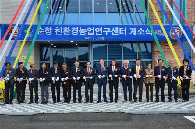13일 전라북도 송하진 지사와 황숙주 순창군수, 김종섭 군의회 의장 및 군의원, 최영일 도의원, 이상혁 농림축산식품부 친환경농업과장, 친환경 농업인 등 관계자 300여명이 참석한 가운데 친환경농업연구센터 개소식을 진행했다.