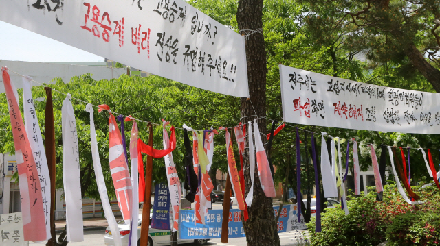 그러나 시는 “집회 목적으로 설치한 현수막은 집회 동안에만 가능하다”면서 “전주 시내 일대에 내건 현수막 300장은 모두 옥외광고물법에 위반돼 수거했다”고 밝혔다.
