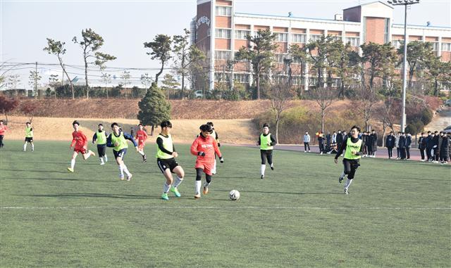 여학생들은 댄스 경연과 피구, 풍선 릴레이 경기, 남학생들은 축구·농구·족구 경기를 각각 치렀다.
