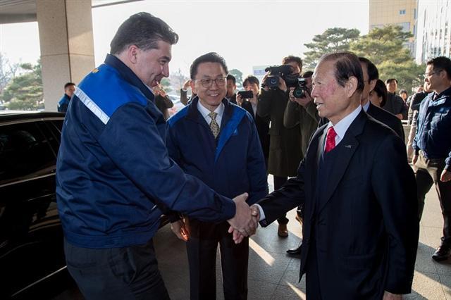 카허 카젬 사장, 군산 방문…도·시 대표 간담회 / 신규물량 배정 등 투자 확대 요청에 원론적 답변 / 비정규직 노동자, 방문 규탄 집회