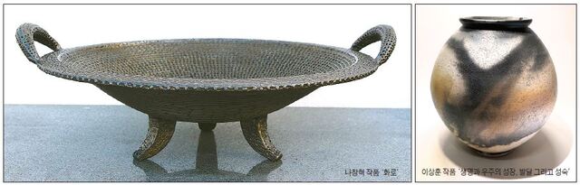 최우수상의 ‘생명과 우주의 성장, 발달 그리고 성숙’은 도자기 표면에 소금류 유약을 바르고 연기에 노출시켜 독특한 색채와 질감을 냈다. 최근 도자 분야가 조형성에 치우치는 경향이 많은데 전통적인 물레 성형 기법을 잘 구현했다는 평가다.