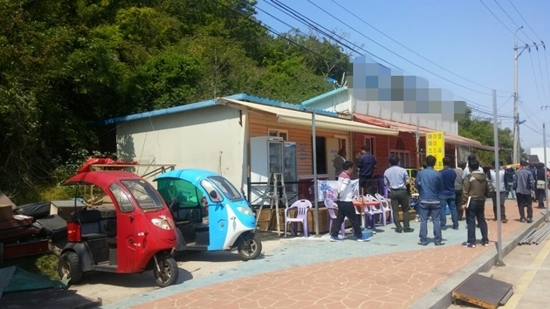 ▲ 선유도 내 무허가 건축물 앞에 주민과 관광객들이 모여 있다.