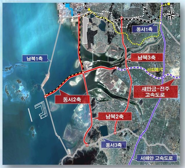 새만금 핵심 기반시설인 남북도로가 완공되면 현재 건설중인 동서도로와 함께 새만금 내부를 십(十)자형으로 가로지르는 도로망이 구축된다.