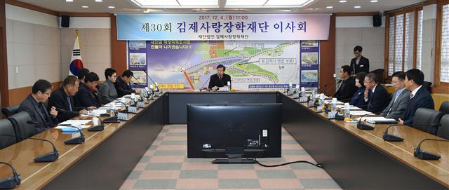 이에 대해 김제사랑장학재단 이사회는 2018년에도 관내 고등학교로 진학한 우수학생에게 대한 격려금 지급 및 성적 우수 학생에 대한 과감한 장학금 지원, 지평선학당 운영을 통한 서울 강남 수준의 교육서비스 제공, 수도권 대학 진학생들의 경제적 부담 경감을 위한 서울장학숙 설립 등 교육경쟁력 강화를 위한 다양한 맞춤형 장학사업을 추진하겠다는 김제사랑장학재단의 2018년도 사업계획안을 최종 승인했다.
