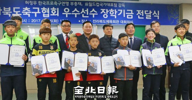 허 부총재는 장학금 전달식에서 “전북의 축구 꿈나무들을 보니 감회가 새롭다. 고향은 전남이지만 인연이 닿는다면 전북 축구 발전을 위해 더욱 많은 역할을 해야겠다는 생각이 든다”면서 “항상 즐거운 마음으로 공을 차야 좋은 결과도 나온다”고 강조했다.