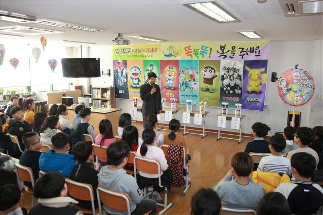 김종규 부안군수는 지난 8일 부안초등학교(교장 고광태)에서 4학년 학생 80여 명과 함께 ‘똑똑똑! 군수님, 복을 주세요’를 주제로 특강을 개최했다.