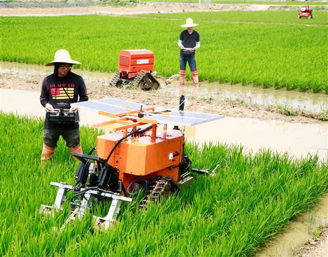 ▲ 농진청에서 개발한 농업용 로봇 시연 장면.