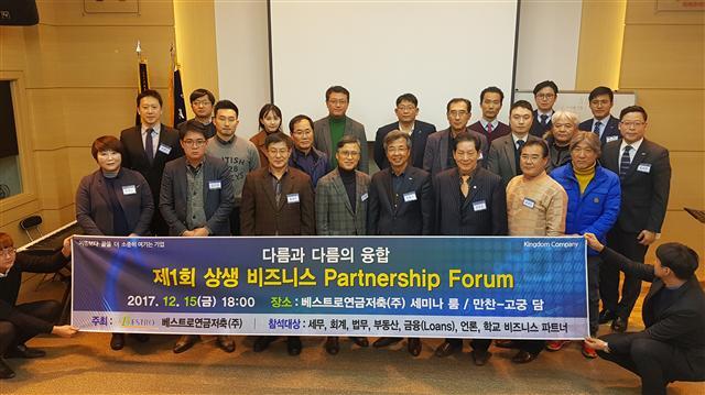 베스트로연금저축(주)(이하 베스트로)는 지난 15일 ‘다름과 다름의 융합’이라는 주제로 제1회 상생 비즈니스 파트너십 포럼을 개최했다고 18일 밝혔다.
