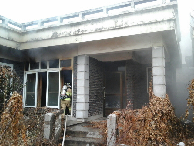 24일 오후 1시 32분께 군산시 경암동 빈 주택에서 불이 나 신원을 알 수 없는 남성이 숨졌다.