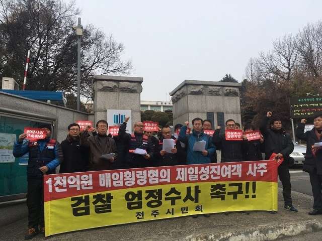 전주 최대 시내버스 업체가 사주 아들 앞으로 500억 원의 채권을 허위로 설정한 것과 관련, 시민단체가 사주의 수사와 구속을 촉구하고 나섰다.