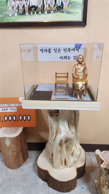 이 소녀상은 학생들이 역사프로젝트수업의 일환으로 학교 측에 제안, 십시일반 모은 성금과 회현면 마을장터 수익금, 총동문회 기부금으로 제작됐다. 특히 소녀의 상을 받치고 있는 나무는 교내에서 자라고 있는 일본수종의 나무로 제작했다.