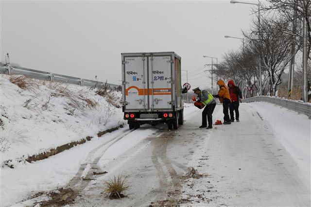 또 일선 지구대와 파출소에서는 순찰을 통해 도로가 막힌 곳과 결빙구간을 대상으로 제설차량을 신속히 투입, 해소했다.