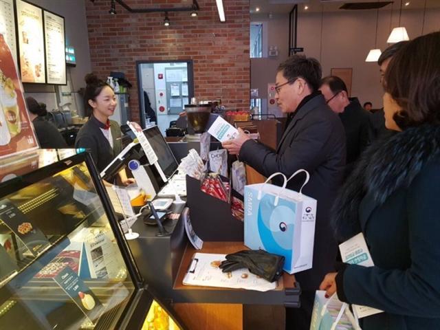 ▲ 전북지방중소벤처기업청은 11일 소상공인들이 밀집한 전주 서부신시가지 상점가를 찾아가‘일자리 안정자금 지원 제도’현장 홍보를 진행했다.
