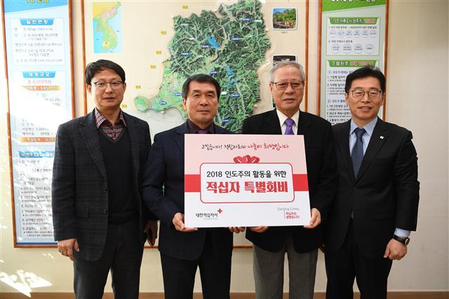▲ 완주군은 지난 12일 2018년도 적십자 특별회비를 전달했다. 사진제공=완주군