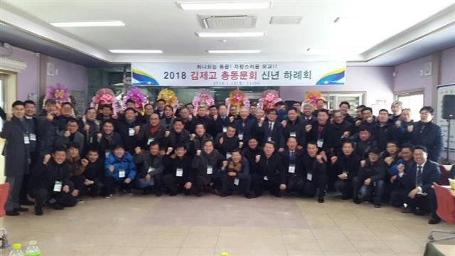 이날 행사는 내빈소개 및 떡케익 커팅식,교가 제창 순으로 진행됐고, 케익커팅식에서는 2018년 무술년에 김제고 총동문회의 야심찬 행보 및 새로운 도약의 원년을 기약 하는 결의를 다졌으며, 선·후배 기수 별 건배사로 상호 덕담을 나누며 분위기를 한층 고조시켰다.