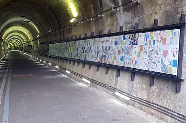향가터널내 200m 길이 ‘꿈의 자리’에 설치했으며 이번에 약 19m의 그림타일을 설치했다.