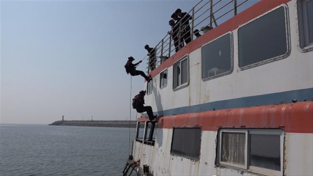22일 부안해양경찰서는 “각종 해양사고 발생시 좌초선박이나 전복선박에서의 승조원과 해상 추락자, 고립자 등을 신속하고 안전하게 구조하기 위해 해양 로프구조 훈련을 실시했다”고 밝혔다.