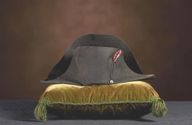 50cm 정도 크기의 나폴레옹 이각모는 나폴레옹이 200여년 전 이탈리아 마렝고 평원에서 오스트리아 멜라스 장군이 이끈 7만 군대를 상대로 대승을 거둔 전투에서 직접 착용한 것으로 알려져 있다.
