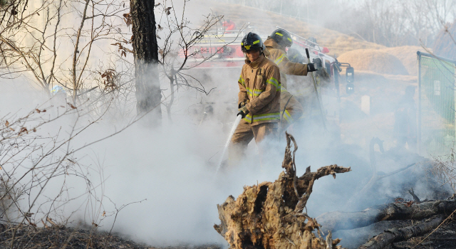 30일 오후 2시33분께 전주시 완산구 효자동 황방산에서 불이 나 임야 1500㎡와 인근의 컨테이너 2동이 불에 탔다.