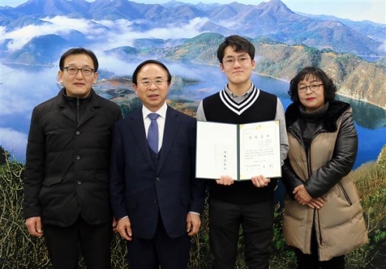 심군수는 “어려운 환경을 극복하고 훌륭하게 성장한 김 군에 경의를 표한다”며 또 다른 애향장학금 지원도 약속했다.