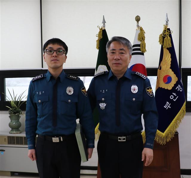 부안경찰서(서장 이동민)는 5일 오전 2층 경찰서장실에서 경찰서장, 각 과장이 참석한 가운데 업무유공 경찰관에 대한 표창 수여식을 가졌다. 이날 수여식에서는 순찰 근무중 차량화재 발견, 신속한 초동조치로 인명구조 유공 서림지구대 김진수 경사에게 경찰서장 표창을 수여하였다.