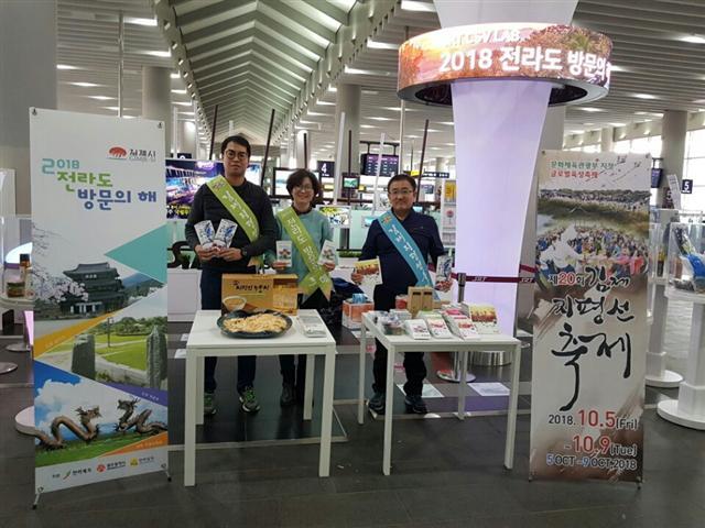 김제시는 8일 수서역에서 ‘2018 전라도 방문의 해’를 맞아 벽골제 및 금산사 등 관내 대표관광지를 포함 전라도 곳곳의 관광명소와 대한민국 글로벌 육성축제에 선정된 지평선축제를 널리 알리는데 구슬땀을 흘렸다.