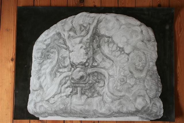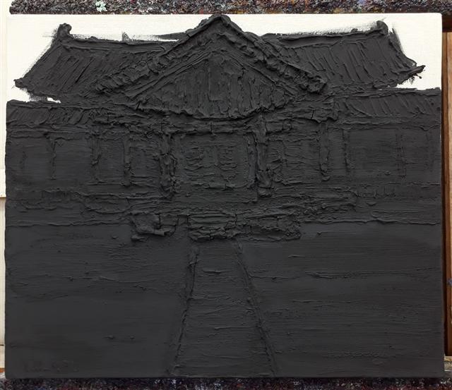 김성민 서양화가는 흑연으로 경기전을 그렸다. 일일이 갈아서 가루로 만든 흑연을 마치 까만 물감처럼 사용했다. 보통 4B연필로 그림을 그리지만 연필심의 본질인 흑연 자체로 작업한 것이 특징이다.