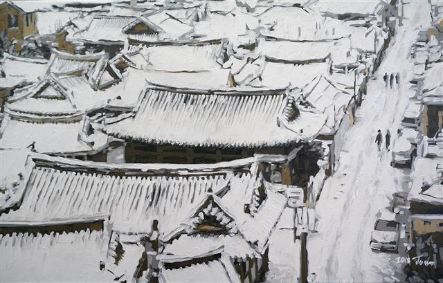 드로잉의 전형을 보여준다는 이문수 작가는 구체적인 형상보다는 작가의 심상, 느낌을 강조한 모습이다. 유화 드로잉을 보여준 이주원 작가는 투박한 붓터치로 ‘눈 내린 한옥마을 전경’을 단숨에 그려냈다.
