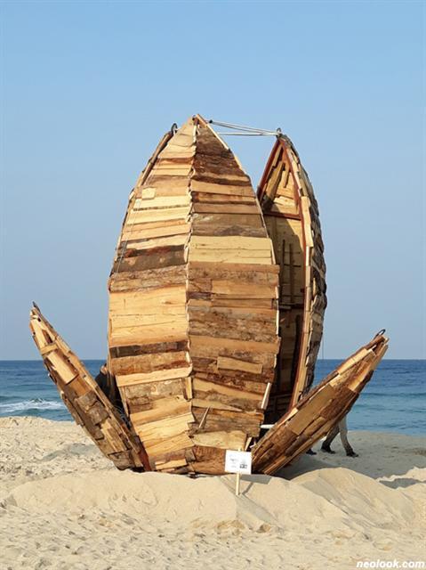 오는 25일까지 강릉 경포해변에서 열리는 ‘파이어 아트 페스타 2018’는 동해바닷가에 약 4미터 높이의 대형 미술작품을 전시하고 정해진 기간에 불태워 자연으로 돌려보내는 제의적인 문화행사다.