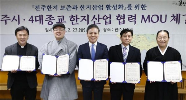 시와 4대 종단은 이날 MOU를 토대로 전주한지의 우수성과 가치를 널리 알리고 전통한지의 보존과 전통계승을 위한 관련 산업 활성화에도 앞장설 계획이다.