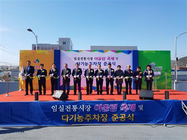 ▲ 26일 임실전통시장에서 열린 다기능주차장 준공식에서 참석자들이 기념 테이프 커팅을 하고 있다.