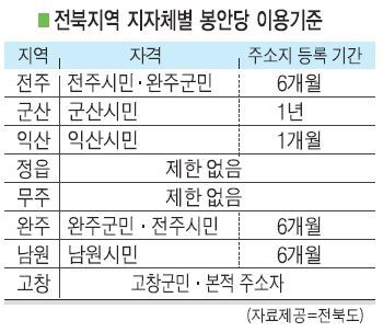 지역내 주소지 등록 조건은 익산 1개월, 전주·남원·완주 각 6개월, 군산 1년 등이다.
